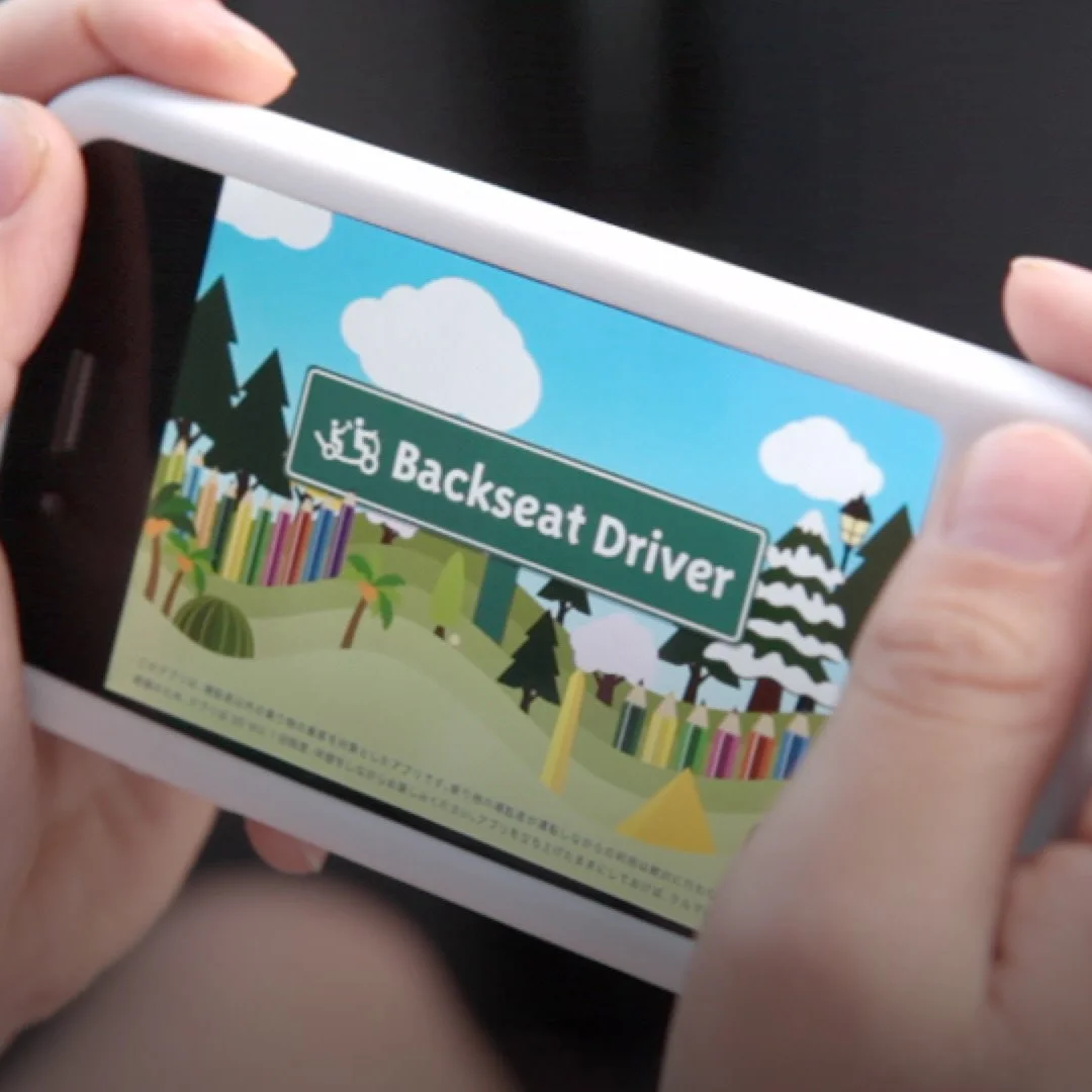 “Backseat Driver” is the first digital toy from ToyToyota. It is an iPhone app for kids to enjoy driving from the backseat of a car. By using the iPhone's GPS function, players are able to drive a virtual car that moves in sync with the car they are physically riding in. They can collect actual shops and landmarks as items along the journey, which we generated using the Foursquare API. The players can also gain points, customize their cars, and share their drive with friends via Twitter.