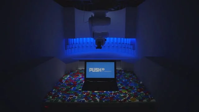 PUSH for Ultrabook™ is a real-time social game powered entirely by Ultrabook, and promoting a range of Ultrabooks. Users from all around the world could participate by logging into Facebook or Twitter. Their names were transformed into 3D blocks, lined up by a robot arm, and used to try dropping the Ultrabook off a stage. The game also featured entertaining elements such as heart-shaped bonus blocks when players shared the site, as well as the real-time projection of the user icons, Likes, tweets, and social feed. The challenger whose blocks gave that final push, won the Ultrabook. During the three weeks this game was live, 49,456 people participated, with 27 Ultrabooks given to the lucky winners.